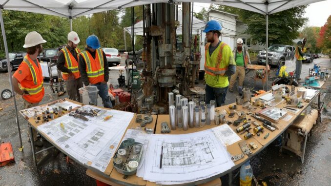 Схема инженерно-геологических изысканий на участке под гараж Методология расчета несущей способности одной сваи использует формулу по СП 24.13330.2011: Fd = γc * (qb * Ab + fs * As), где qb — сопротивление на конце, fs — трение по боковой поверхности, γc — коэффициент условий работы (1,0–1,2), Ab и As — площади. Для примера на суглинке qb=2000 к Па, fs=50 к Па, d=0,2 м, L=4 м: Fd ≈ 120 к Н. Групповой эффект корректирует на коэффициент η=0,7–0,9 при шаге свай 3–4d. Ограничения анализа: расчет не учитывает боковые нагрузки от ветра (до 0,5 к Па в центральных регионах); для полной картины применяют программное обеспечение типа СВАЯ или Plaxis, сертифицированное в РФ. В случае недостатка данных рекомендуется консультация с геотехником для избежания ошибок, ведущих к деформациям до 10–15 см.